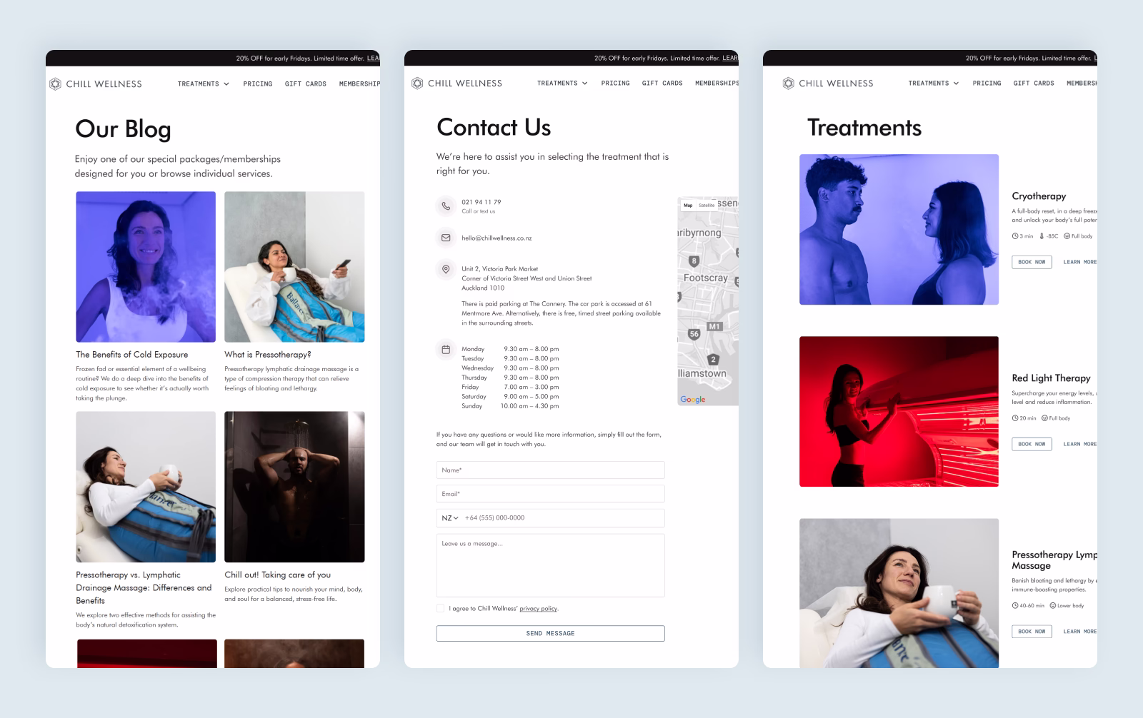 Chill Wellness needed a modern, intuitive website that matched their cutting-edge treatments. Their previous site lacked clarity, consistency, and smooth booking paths, making it hard for customers to explore treatments or understand the benefits of their advanced wellness technology.