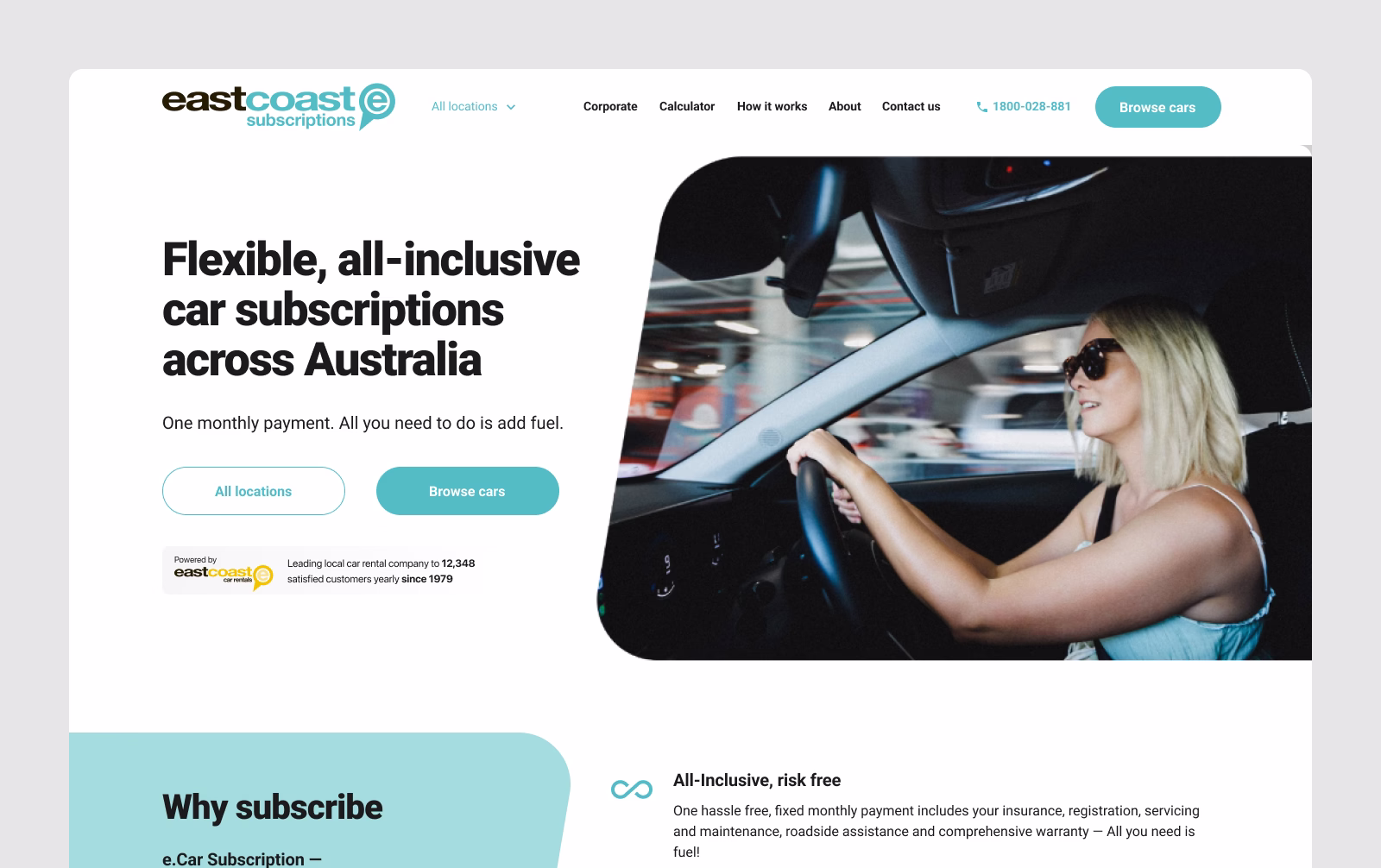 A complete website presents the subscription model, available vehicles, pricing, and key benefits, helping users quickly understand the service and explore options.