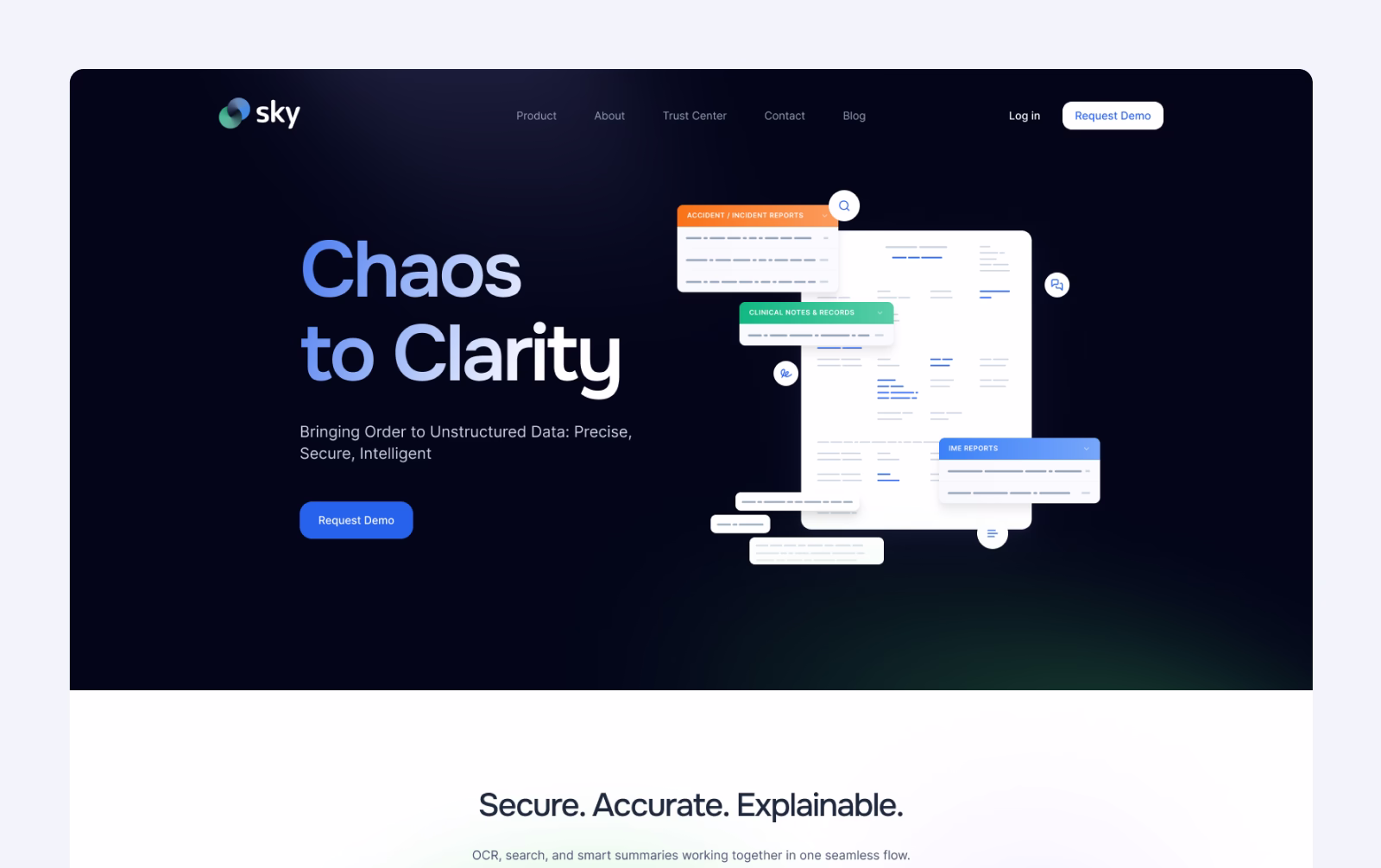 Sky Tech is an AI platform helping insurance, legal, and healthcare teams process unstructured data. Using advanced OCR, intelligent summarization, and real-time analysis, it transforms how professionals handle medical records, claims files, and case documents with accuracy and compliance.