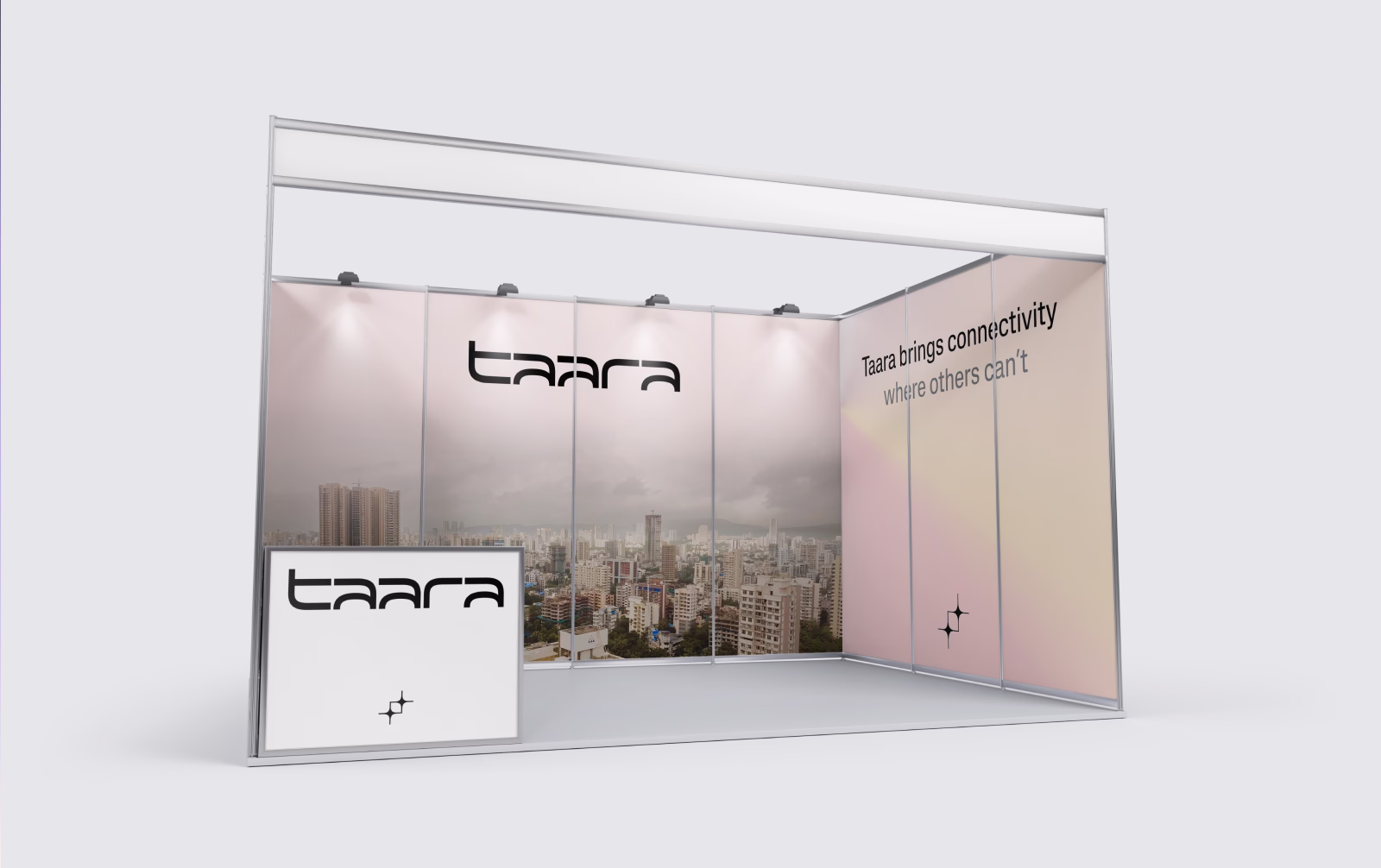 A clean, accent-driven booth design aligned with Taara’s brand colors, created to clearly present the product, attract attention in busy venues, and stand out in high-traffic industry events.