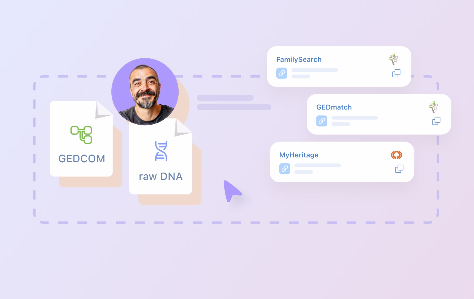 Supports GEDCOM imports from multiple genealogy platforms for cross-site analysis.